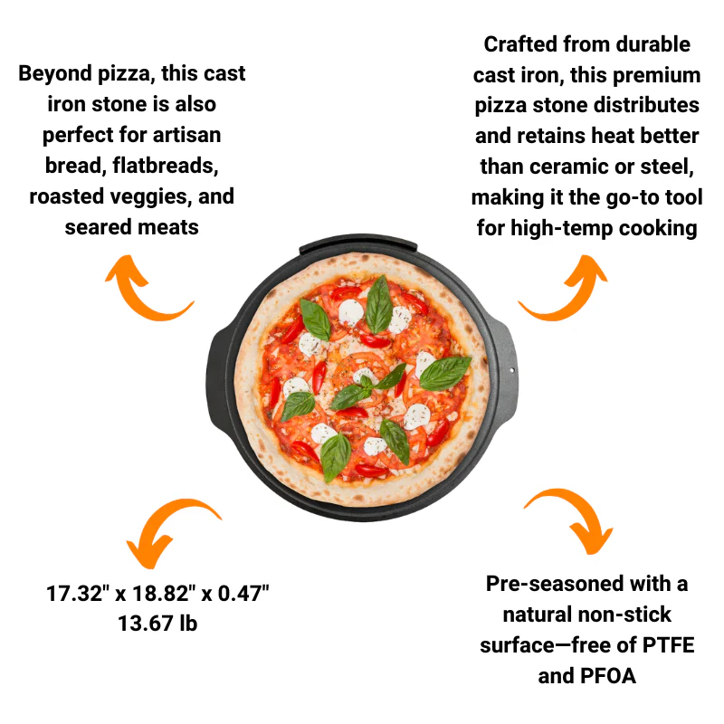 • Consistent Crust: The stone provides a stable, superheated surface, ensuring every pizza gets a consistently crisp and airy crust, unlike a cooler metal surface that can sap heat from the dough.